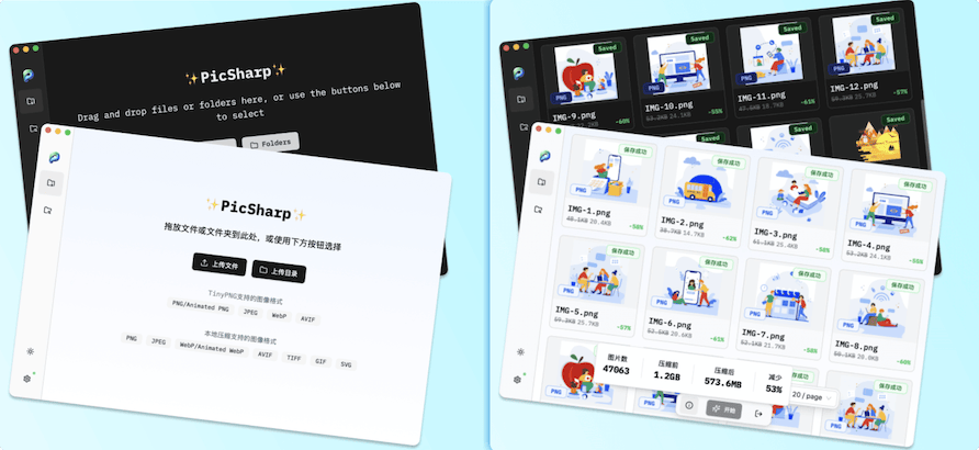 PicSharp,一款开源免费的高效图片压缩工具,支持本地和TinyPNG API两种模式,10万张图片8分钟完成压缩,还能自动监控文件夹。调整参数后,本地压缩质量媲美TinyPNG,是处理大批量图片的利器。支持Mac、Windows、Linux系统。