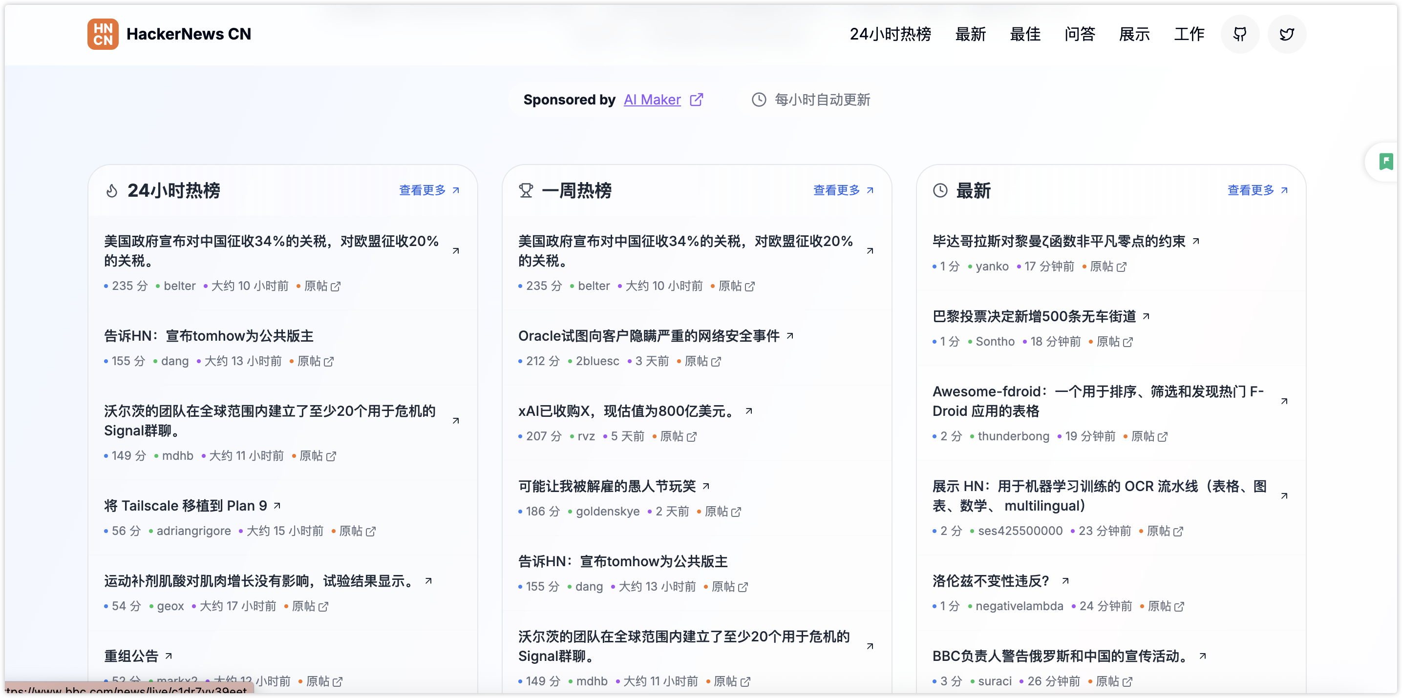 - 🚀 实时同步 HackerNews 最新内容