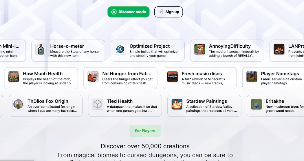 Modrinth,一个我的世界游戏资源分享网站。网站中包含超过 50,000 件作品,从神奇的生物群落到被诅咒的地牢,支持搜索快速找到自己想要的游戏。最喜欢的项目更新时都会收到通知,并随时了解最新动态。Modrinth 的开源 API 允许启动器添加与 Modrinth 的深度集成。