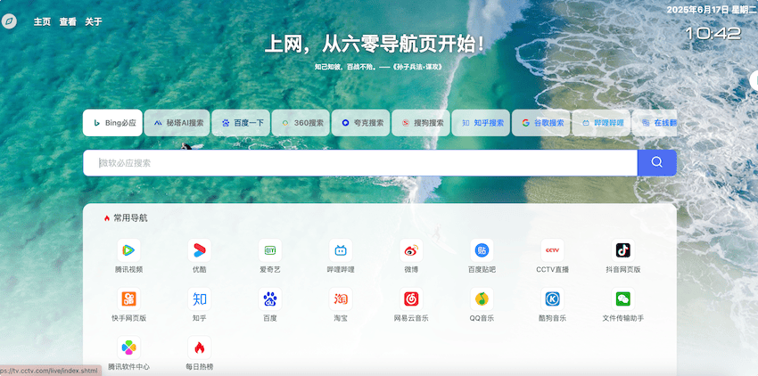 - 每日一图背景: 六零导航页支持使用Bing每日一图作为背景,接口地址: