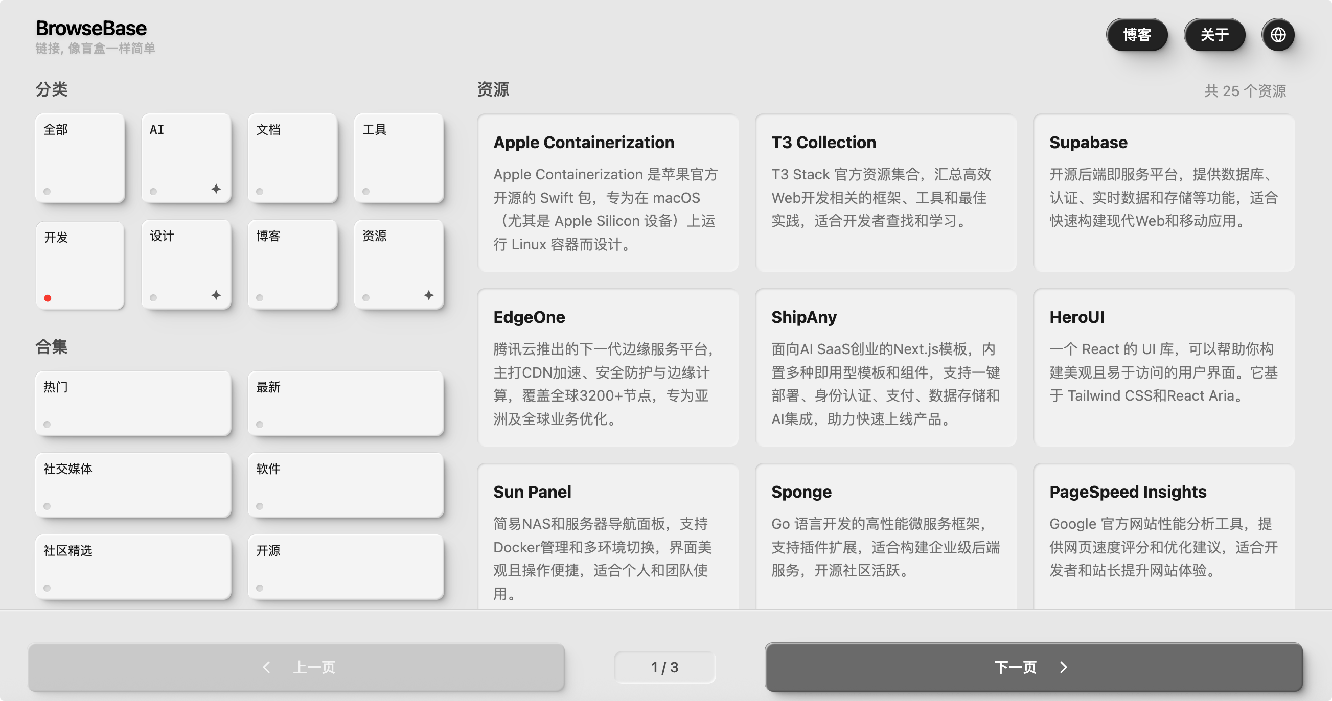 BrowseBase,一个链接管理工具也是资源导航网站,点开链接像打开一个盲盒帮助你发现有趣的内容。网站中汇集了AI、各种项目文档、开发资讯、博客、社交媒体、软件等内容。分类清晰,界面简单,没有广告,资源持续更新中。