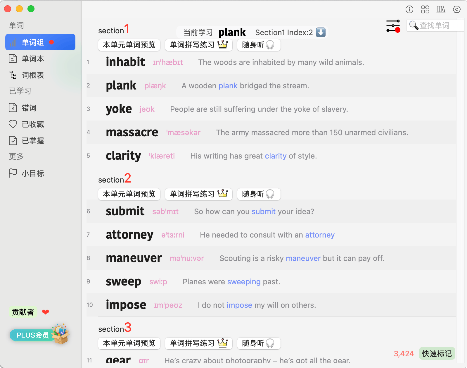 app支持单词解释滚动条出现,可以在办公中,随时记忆查看。且还支持AI动图记单词和随身听等功能。免费使用,软件界面清晰,还有错词本、已收藏、已掌握等分类目录。