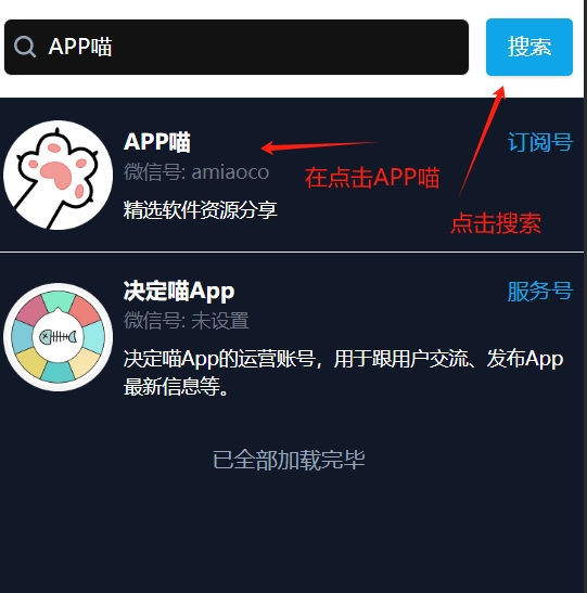 这里可以选择你喜欢的公众号,图里以APP喵为参考
