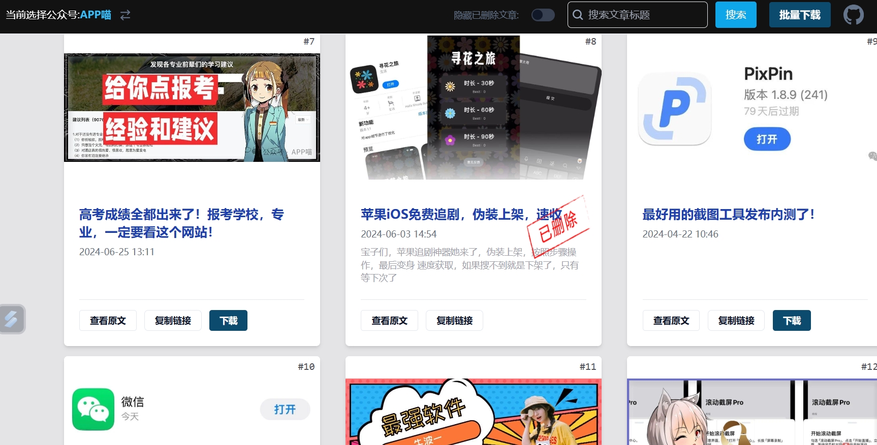 然后即可看见阿喵的全部文章,选择喜欢的下载,注意:已删除的暂时不支持喔~
