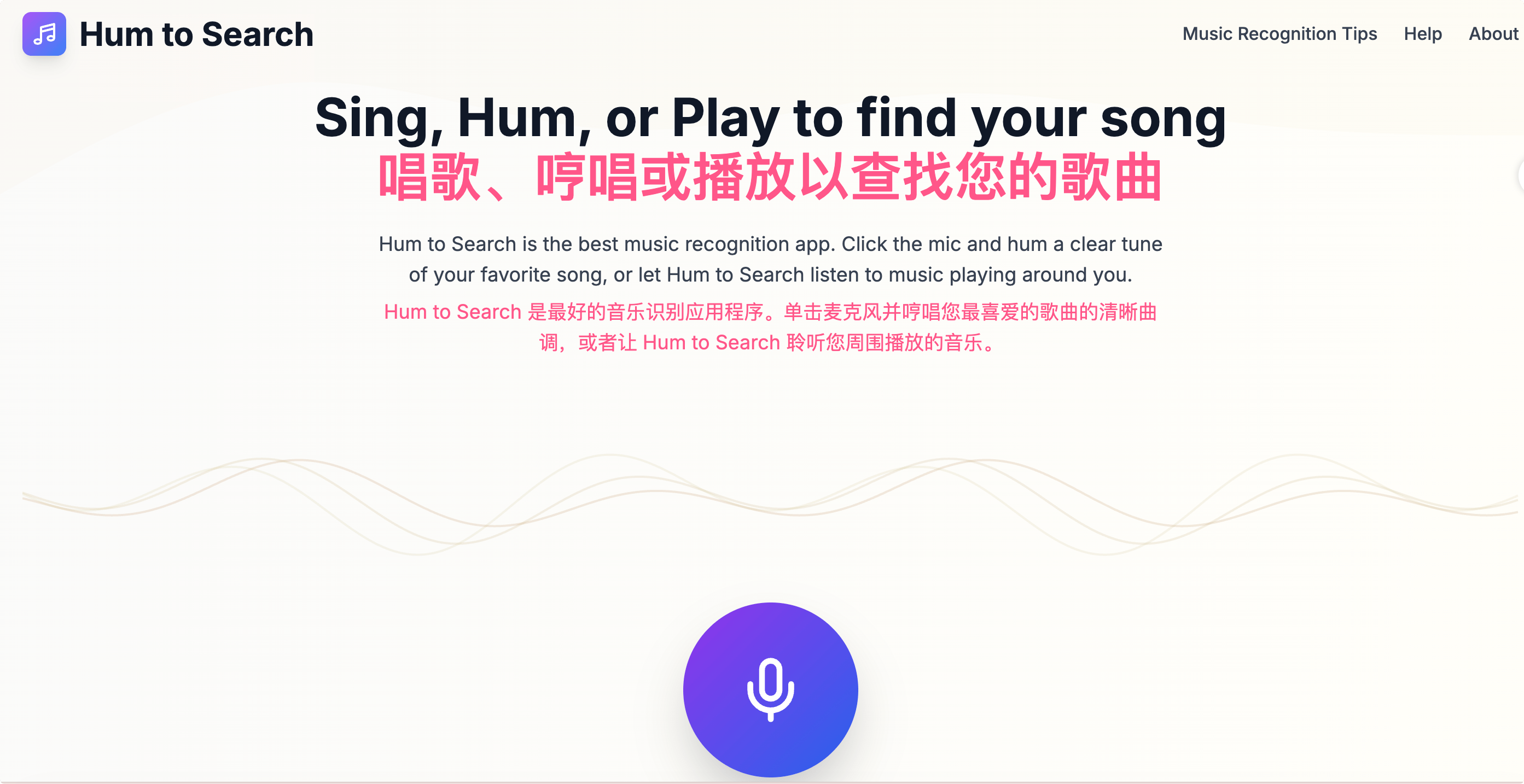 Hum to Search 是最好的音乐识别应用程序。单击麦克风并哼唱您最喜爱的歌曲的清晰曲调,或者让 Hum to Search 聆听您周围播放的音乐。