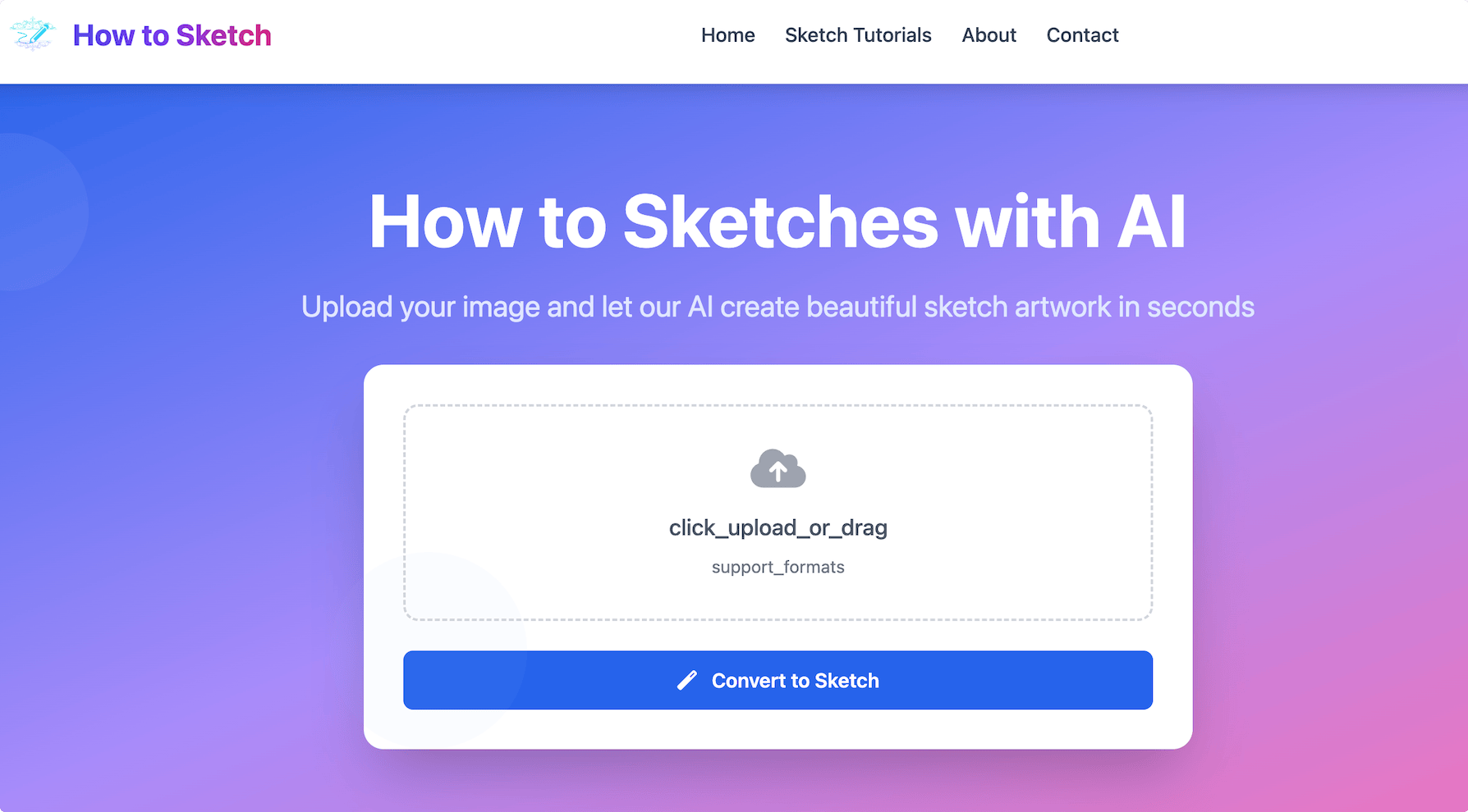How to Sketch,一个借助AI技术将照片转换为素描风格图像的网站。完全免费,无须注册,上传图片点击转换即可,支持 JPG、PNG 和 GIF 格式,文件大小上限为 5MB,图像是临时存储,会在 24 小时后自动删除,保护隐私。