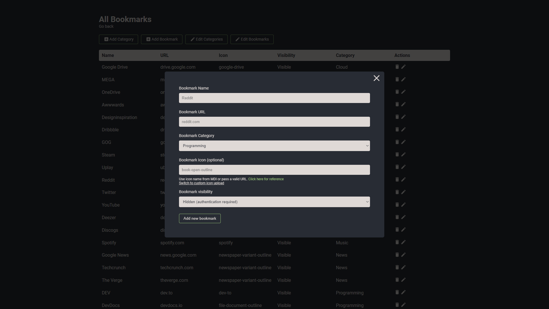 - 📝 使用内置的图形用户界面编辑器,直接在应用内创建、更新和删除您的应用和书签。