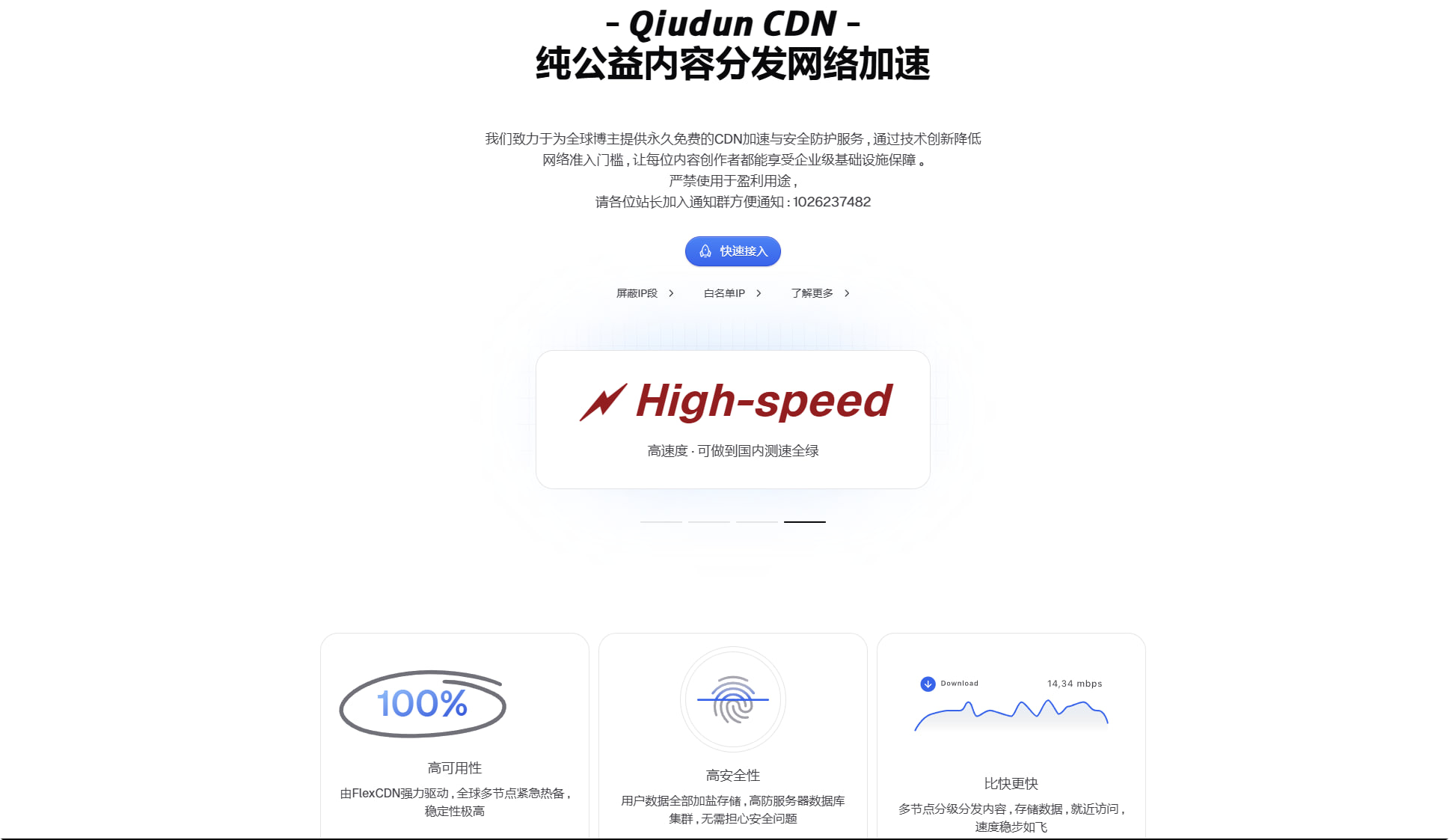 纯公益内容分发网络加速,致力于为全球博主提供永久免费的 CDN 加速与安全防护服务 , 通过技术创新降低网络准入门槛 , 让每位内容创作者都能享受企业级基础设施保障