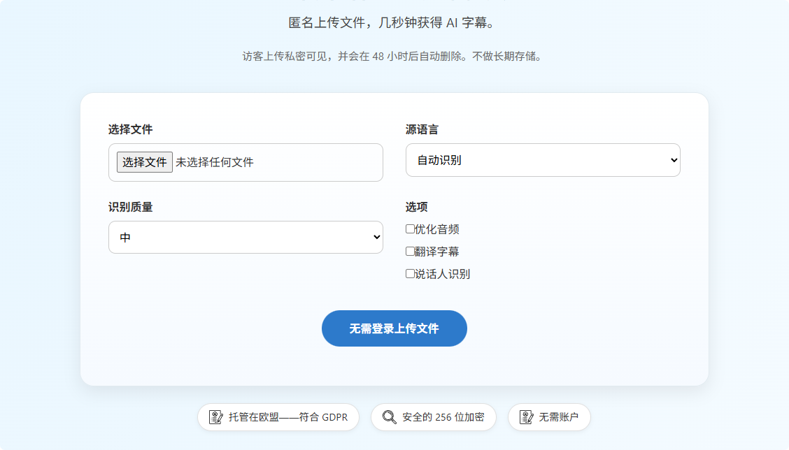 无需账户即可创建字幕。稍后注册即可无限保存。