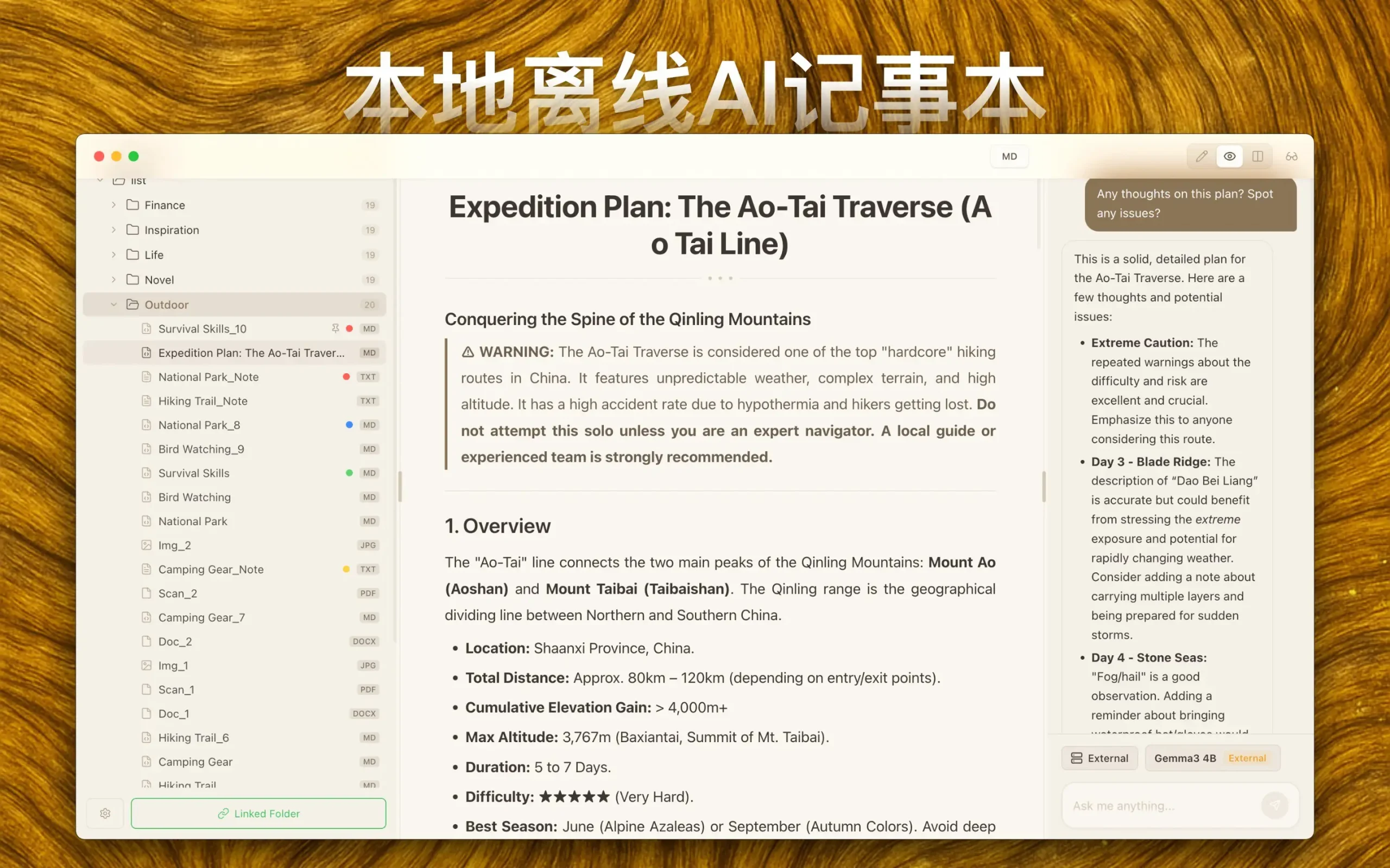 - 📝 纯本地笔记 — 选择任意文件夹作为笔记库,支持