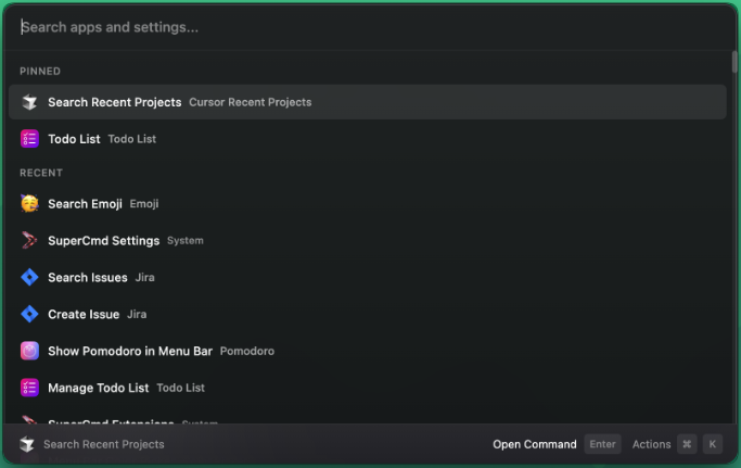 SuperCmd 是一个 Electron + React 启动器,专注于 Raycast 扩展兼容性,同时保持社区驱动和开源特性。