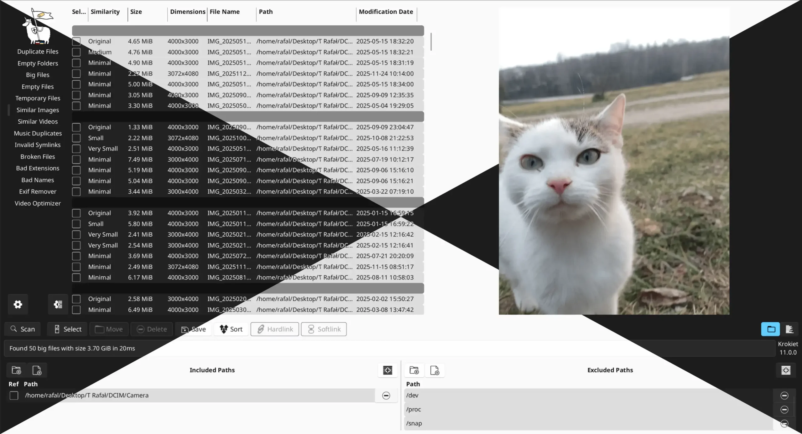 Czkawka 是一款免费开源、跨平台、轻量极速的文件清理工具,主打重复文件 / 相似图片 / 大文件 / 空文件夹等一站式清理,适合想高效释放磁盘空间的用户。