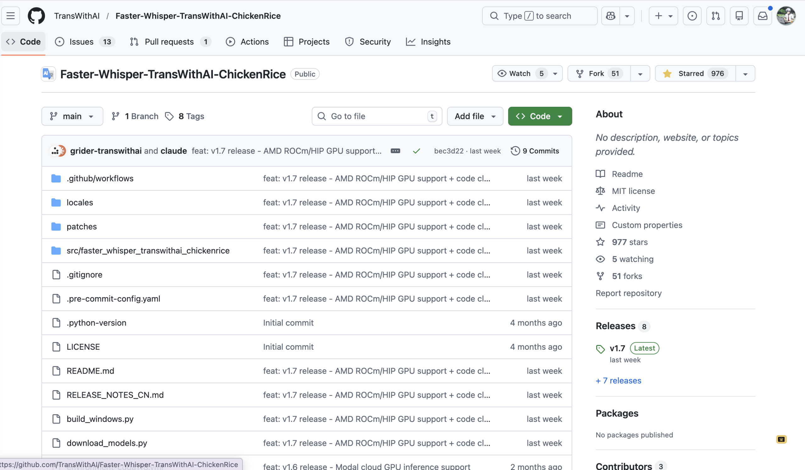 github:https://github.com/TransWithAI/Faster-Whisper-TransWithAI-ChickenRice