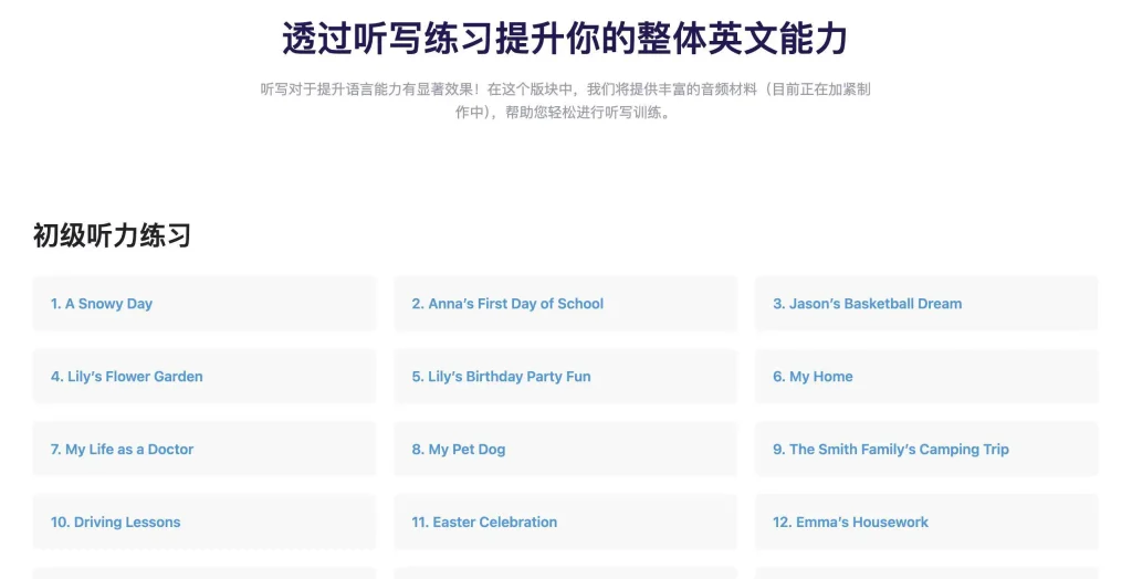- 沉浸式训练:按照网站设计的流程,从听录音到做练习,每天坚持十分钟,摸鱼时间就能提升自己。