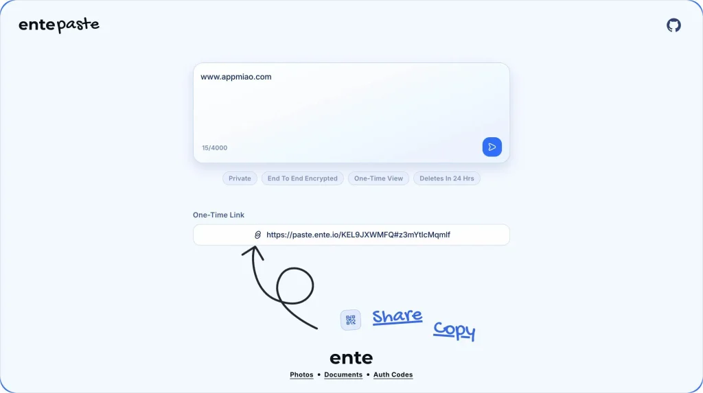 今天阿喵给大家推荐一个来自知名隐私保护团队 Ente 的开源项目——Ente Paste。它主打端到端加密,能让你的敏感文字在分享后彻底消失,不给任何第三方留机会。