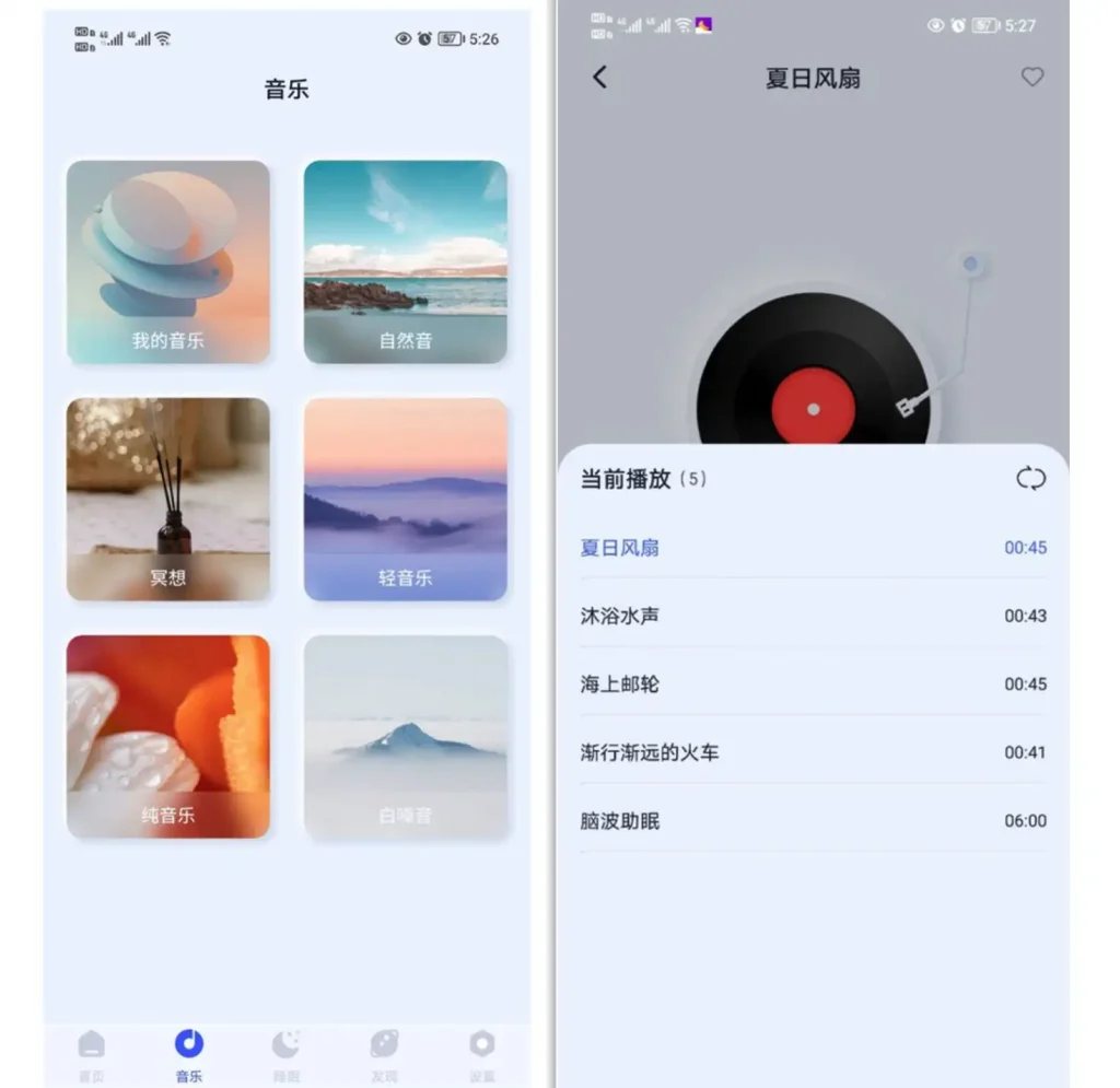 音乐选择:自然音、冥想、轻音乐、纯音乐、白噪音等音乐,让您自由选择自己喜欢的音乐