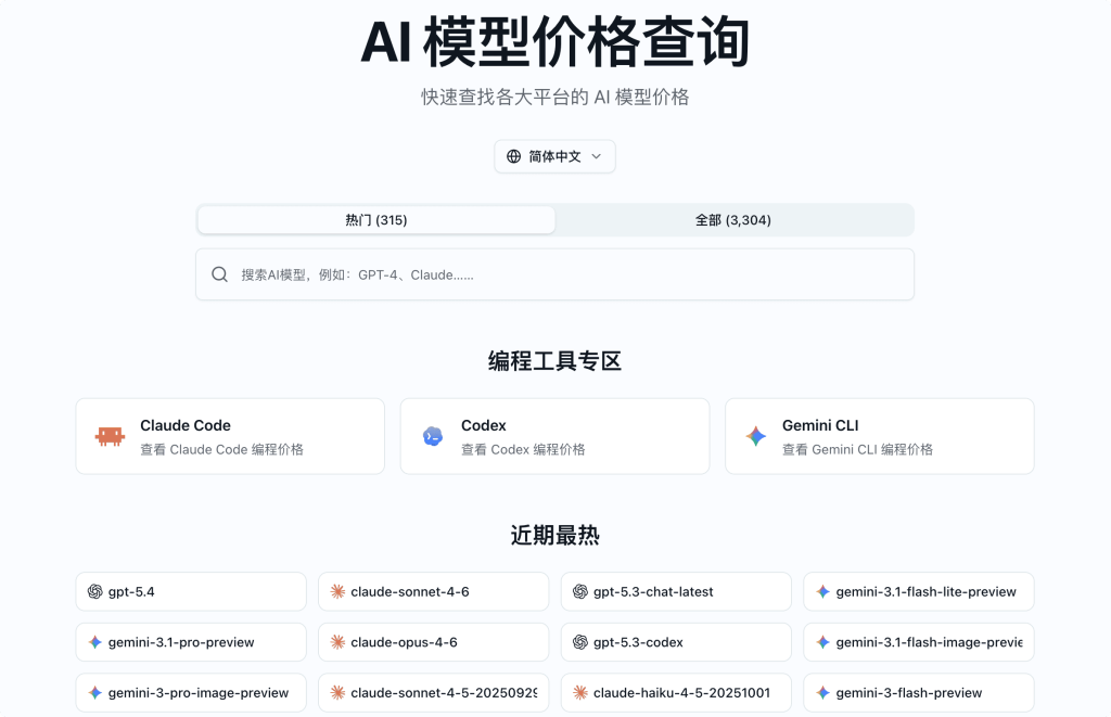| 全平台价格覆盖 | 收录 OpenAI, Claude, Gemini, DeepSeek, Mistral 等 | 一个页面看遍全球主流模型身价,告别多站切换。 |