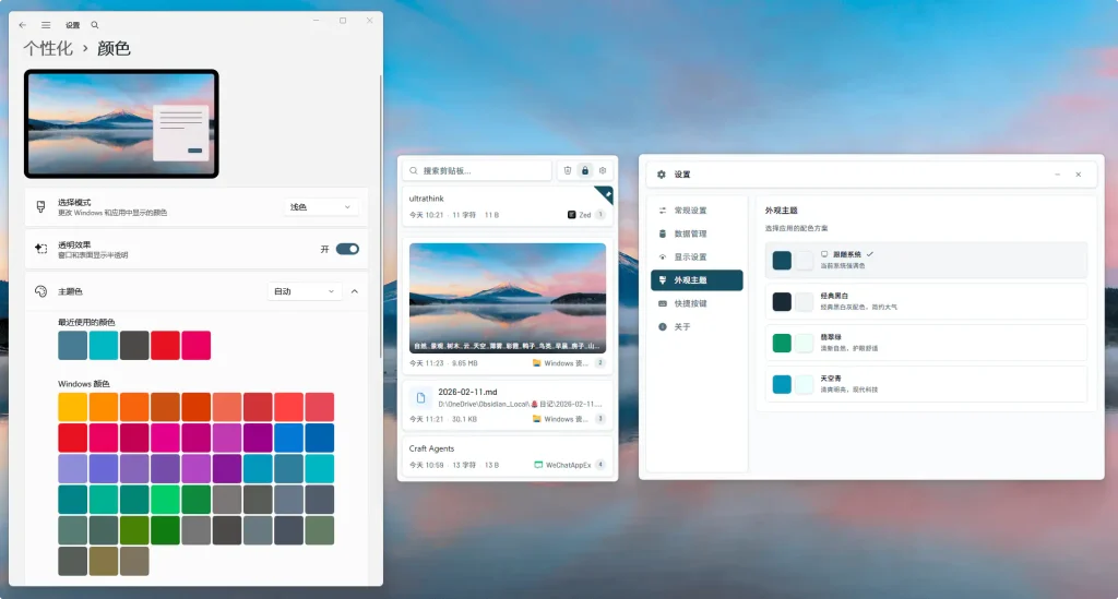 ElegantClipboard 主要针对 Windows 10/11 系统进行了深度优化,上手非常简单: